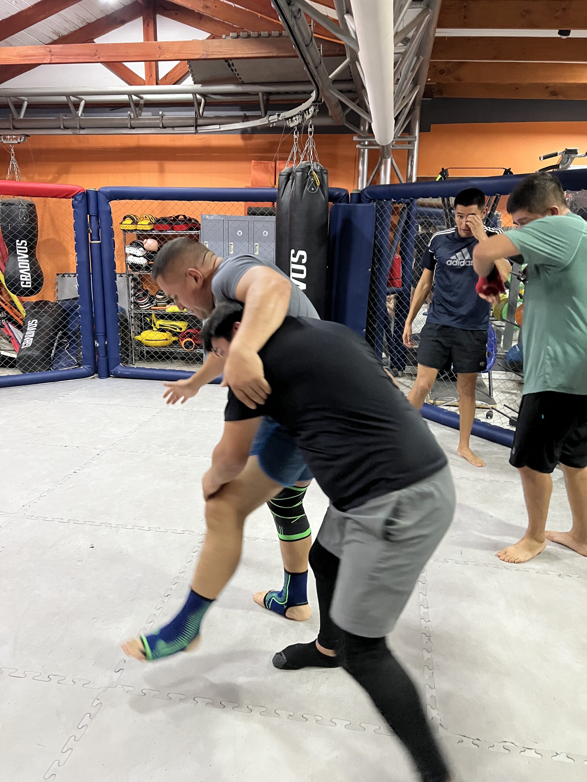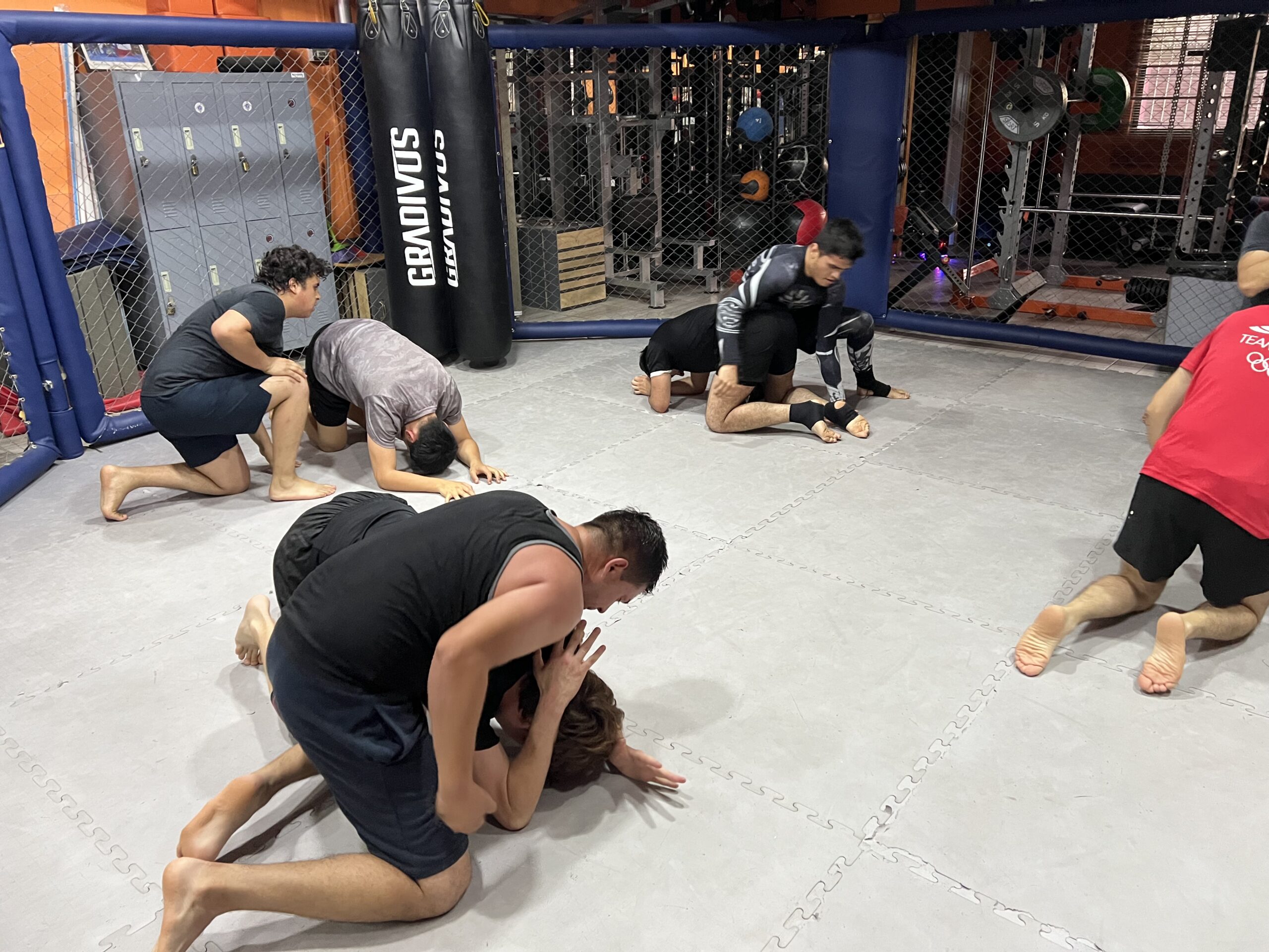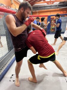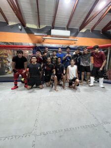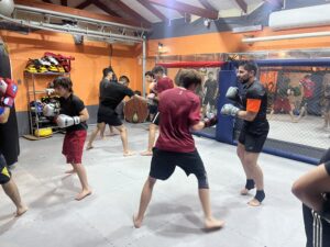 En clase grupal de Artes marciales mixtas (MMA)